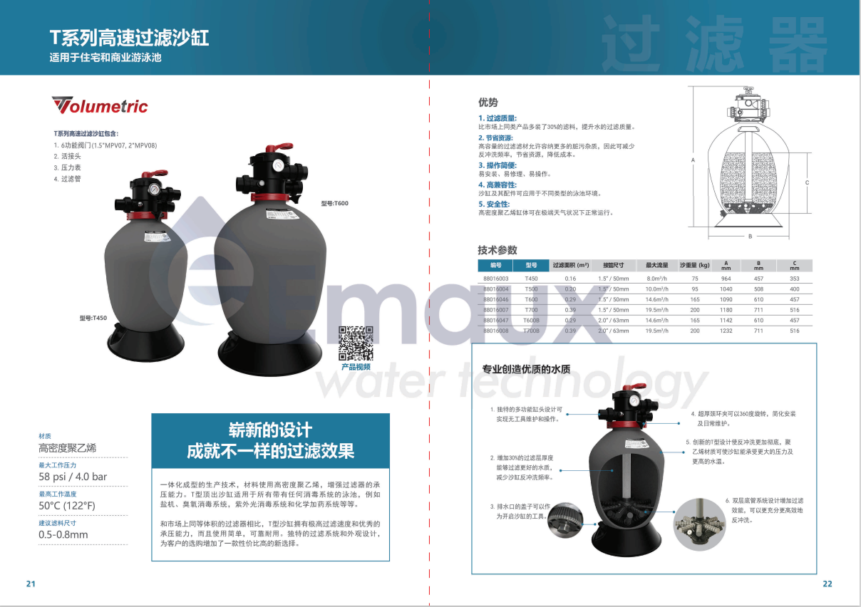 競技池一體化成型的生產(chǎn)技術(shù),材料使用高密度聚乙烯,增強(qiáng)過濾器的承壓能力。T型頂出沙缸適用于所有帶有任何消毒系統(tǒng)的泳池,例如鹽機(jī)、臭氧消毒系統(tǒng),紫外光消毒系統(tǒng)和化學(xué)加藥系統(tǒng)等等。 和市場上同等體積的過濾器相比,T型沙缸擁有極高過濾速度和優(yōu)秀的承壓能力,而且使用簡單,可靠耐用。獨(dú)特的過濾系統(tǒng)和外觀設(shè)計(jì),為客戶的選購增加了一款性價(jià)比高的新選擇。