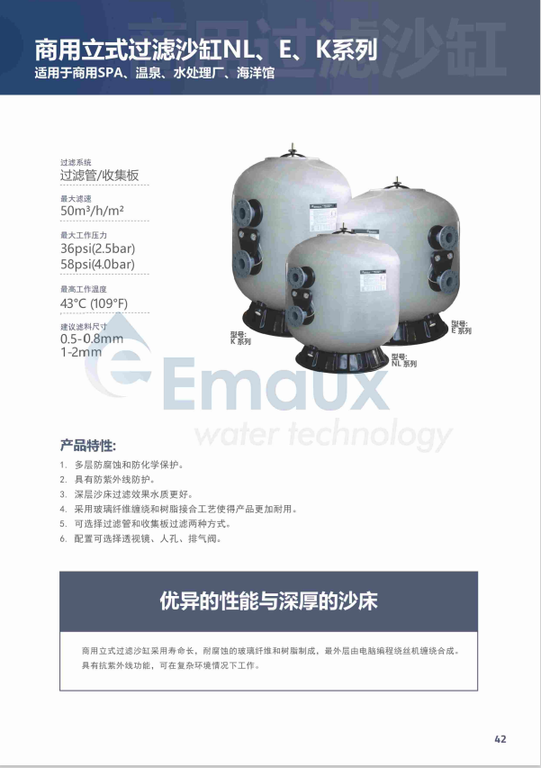 競技池商用立式過濾沙缸采用壽命長,耐腐蝕的玻璃纖維和樹脂制成,最外層由電腦編程繞絲機纏繞合成。具有抗紫外線功能,可在復雜環(huán)境情況下工作。