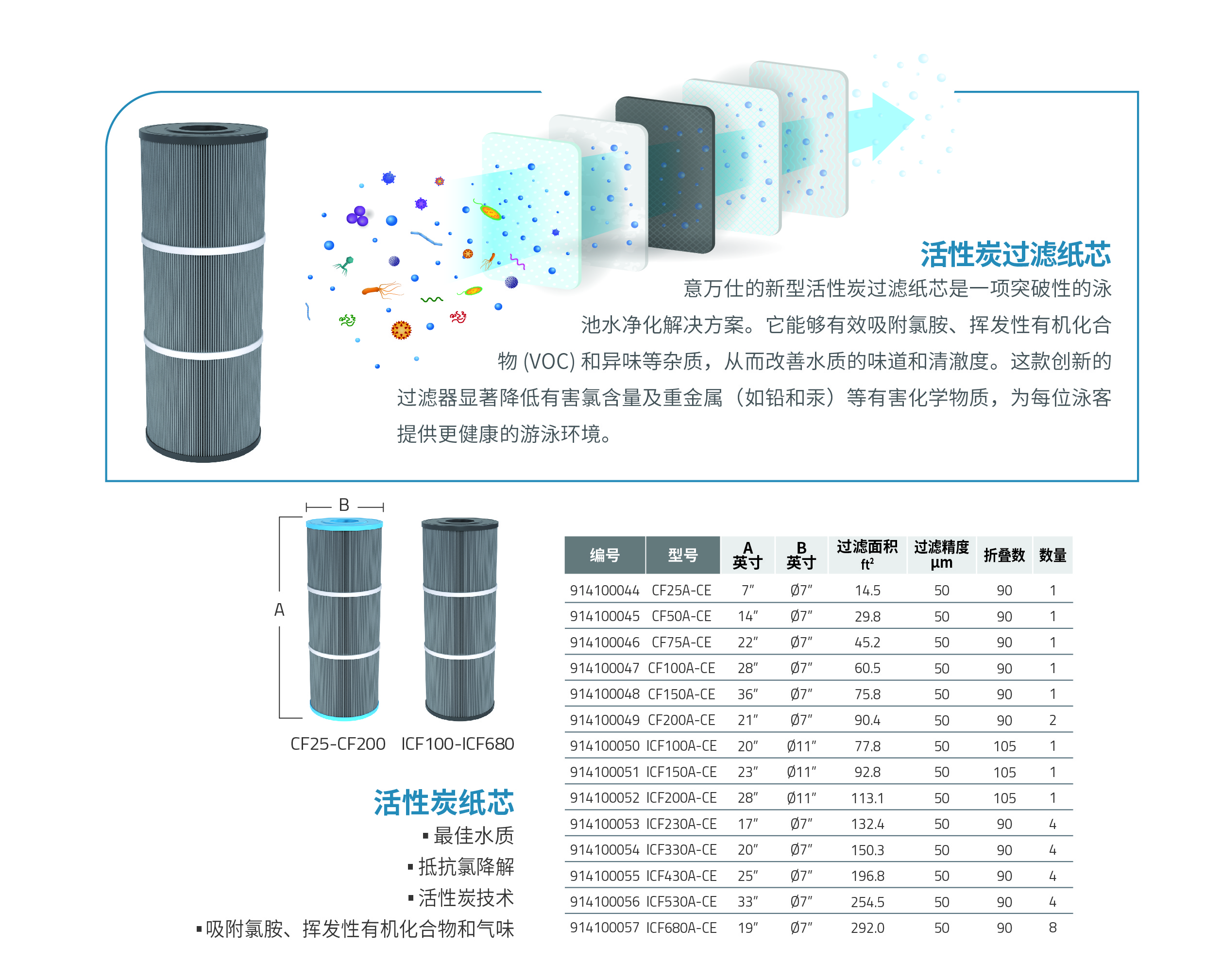 競技池意萬仕的新型活性炭過濾紙芯是一項(xiàng)突破性的泳 池水凈化解決方案。它能夠有效吸附氯胺、揮發(fā)性有機(jī)化合 物 (VOC) 和異味等雜質(zhì),從而改善水質(zhì)的味道和清澈度。這款創(chuàng)新的 過濾器顯著降低有害氯含量及重金屬(如鉛和汞)等有害化學(xué)物質(zhì),為每位泳客提供更健康的游泳環(huán)境。