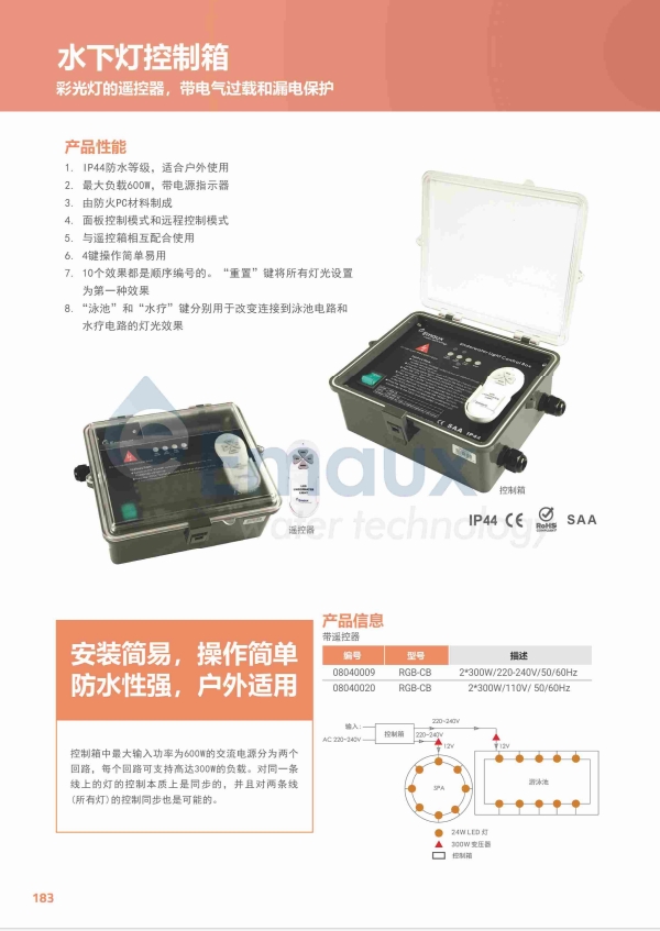 8. “泳池”和“水療”鍵分別用于改變連接到泳池電路和水療電路的燈光效果