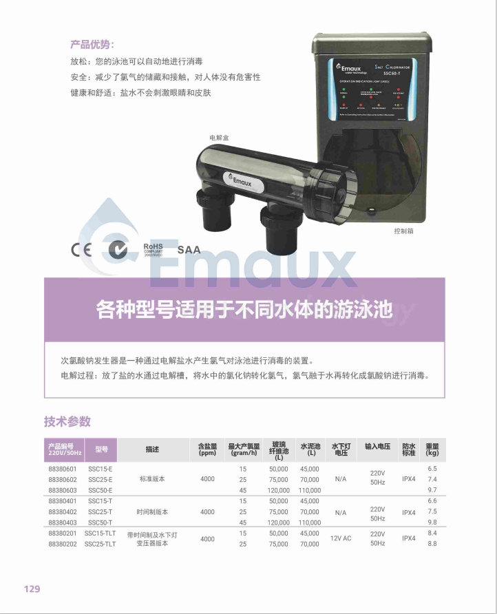 競(jìng)技池次氯酸鈉發(fā)生器是一種通過(guò)電解鹽水產(chǎn)生氯氣對(duì)泳池進(jìn)行消毒的裝置。 電解過(guò)程:放了鹽的水通過(guò)電解槽,將水中的氯化鈉轉(zhuǎn)化氯氣,氯氣融于水再轉(zhuǎn)化成氯酸鈉進(jìn)行消毒。