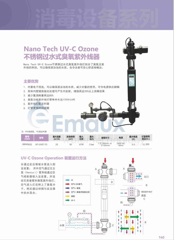 競技池Nano Tech UV-C Ozone不銹鋼過水式臭氧紫外線燈結合了臭氧及紫外線的科技,可以確保游泳池的水質(zhì),也令泳者可安心舒適地暢泳。