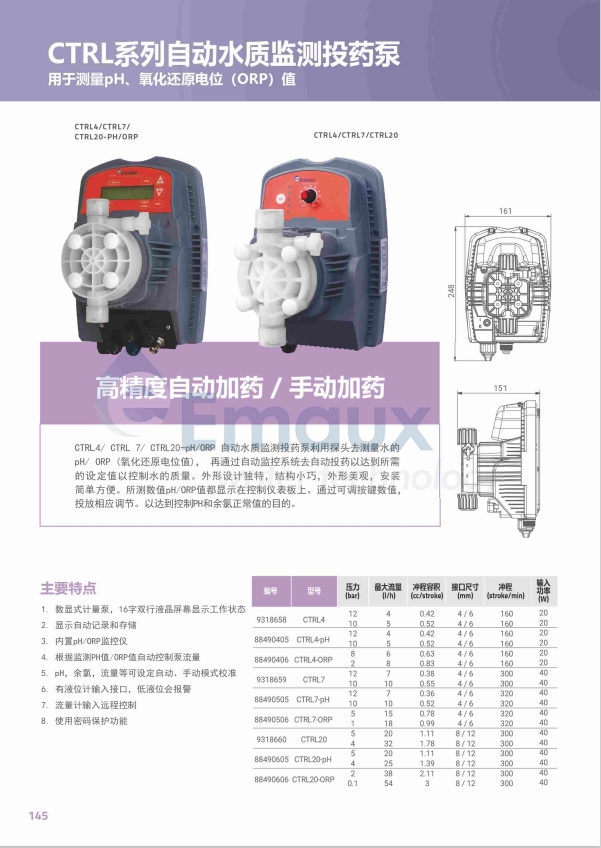 競(jìng)技池CTRL4/ CTRL 7/ CTRL20-PH/ORP 自動(dòng)水質(zhì)監(jiān)測(cè)投藥泵利用探頭去測(cè)量水的PH/ ORP (氧化還原電位值), 再通過(guò)自動(dòng)監(jiān)控系統(tǒng)去自動(dòng)投藥以達(dá)到所需的設(shè)定值以控制水的質(zhì)量。外形設(shè)計(jì)獨(dú)特,結(jié)構(gòu)小巧,外形美觀,安裝簡(jiǎn)單方便。所測(cè)數(shù)值PH/ORP值都顯示在控制儀表板上。通過(guò)可調(diào)按鍵數(shù)值,投放相應(yīng)調(diào)節(jié)。液達(dá)到控制PH和余氯正常值的目的。