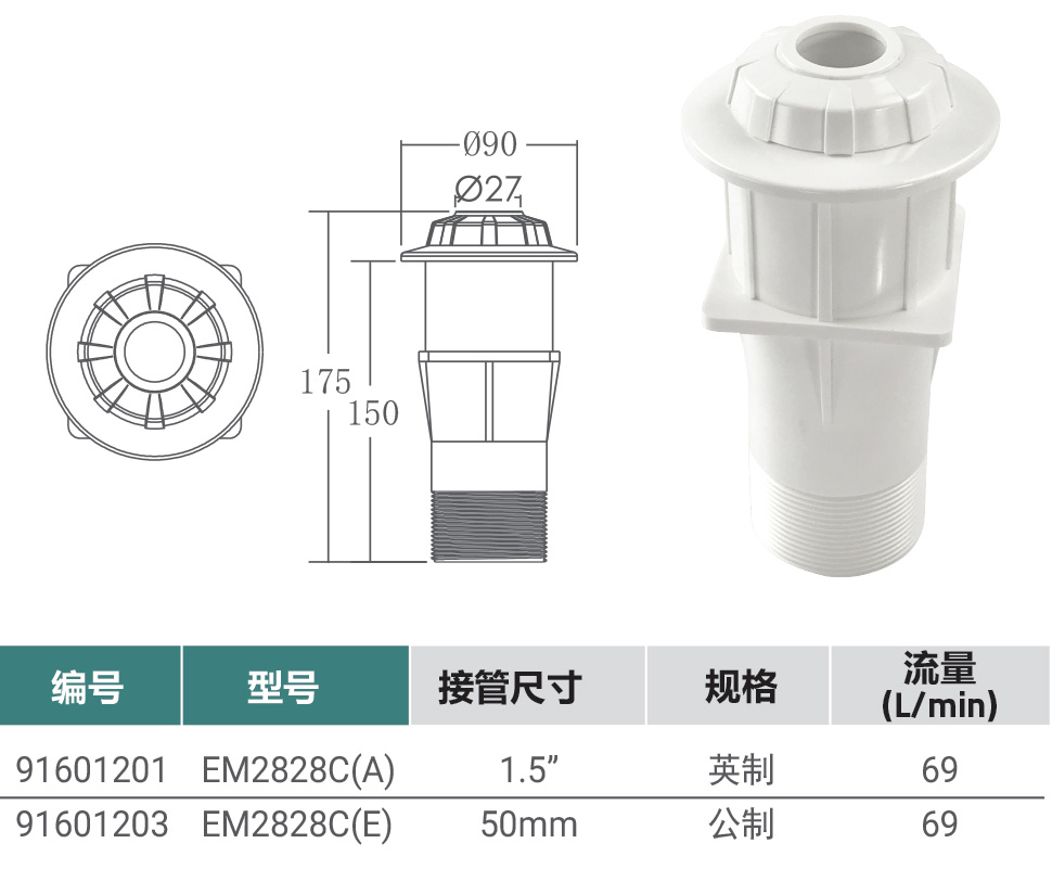 您的位置:首頁>產(chǎn)品概覽>吸污口配件>出水口配件 (EM2828C) (水泥池)