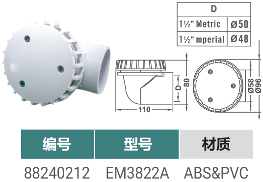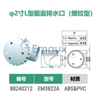 您的位置:首頁>產品概覽>SPA配件>φ2寸L型截面排水口(螺紋型)
