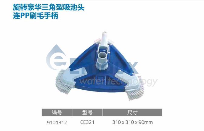 您的位置:首頁>產(chǎn)品概覽>經(jīng)濟型清潔配件>旋轉(zhuǎn)豪華三角型吸池頭 連PP刷毛手柄