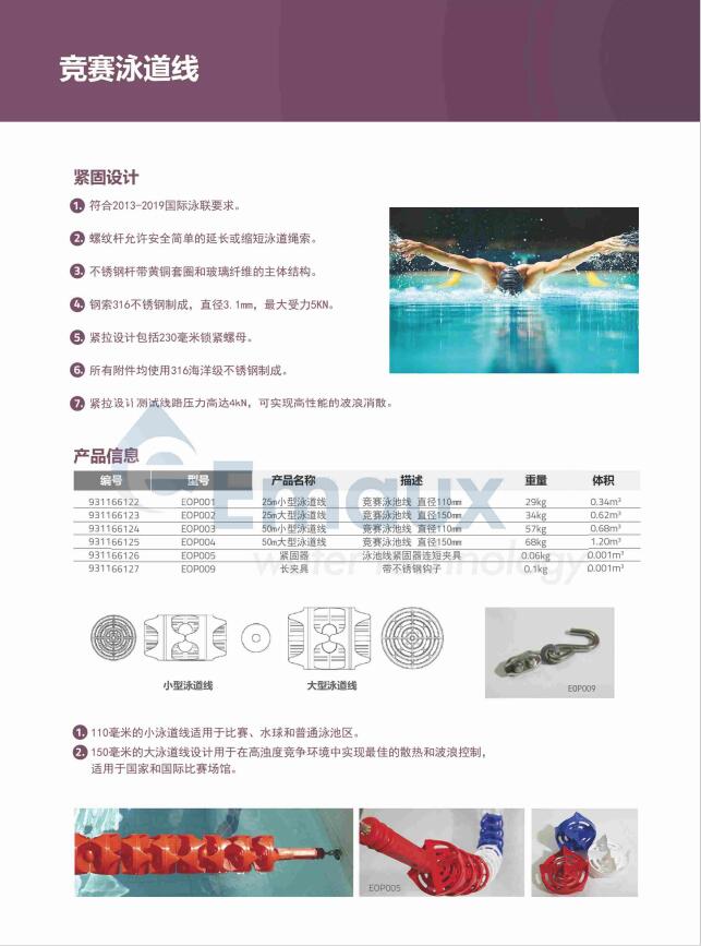 2. 螺紋桿允許安全簡(jiǎn)單的延長(zhǎng)或縮短泳道繩索。